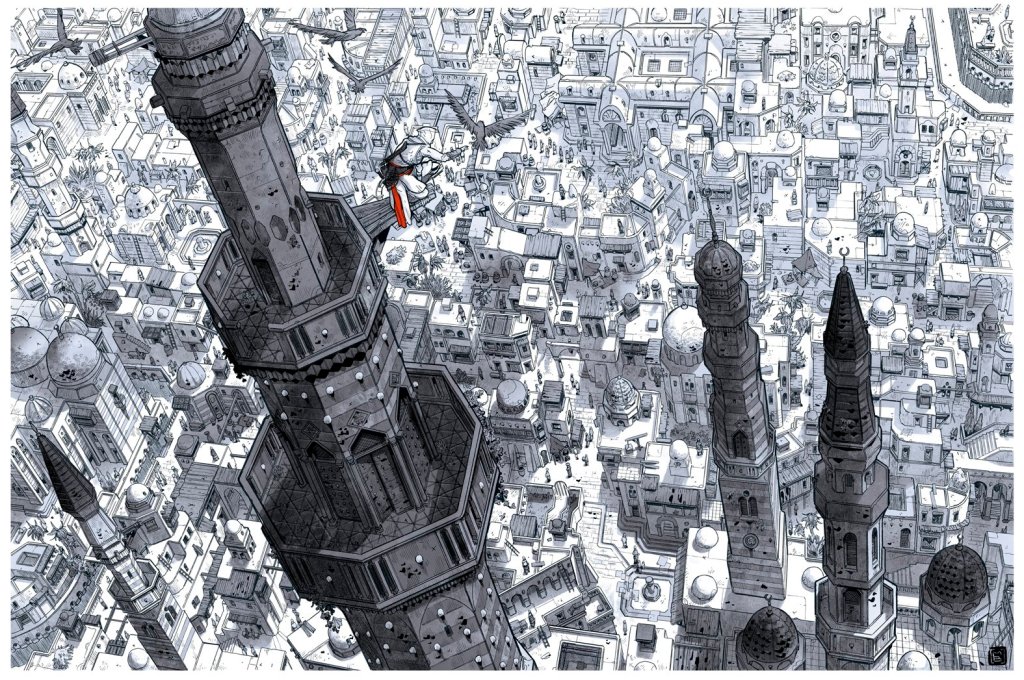 A limited, numbered art print by acclaimed French graphic novel artist Mathieu Bablet — available in both a full-color “regular” edition and a white “variant” edition. Rich in intricate detail, this exceptional piece offers a powerful tribute to the game that launched one of the most significant sagas in modern video game history.