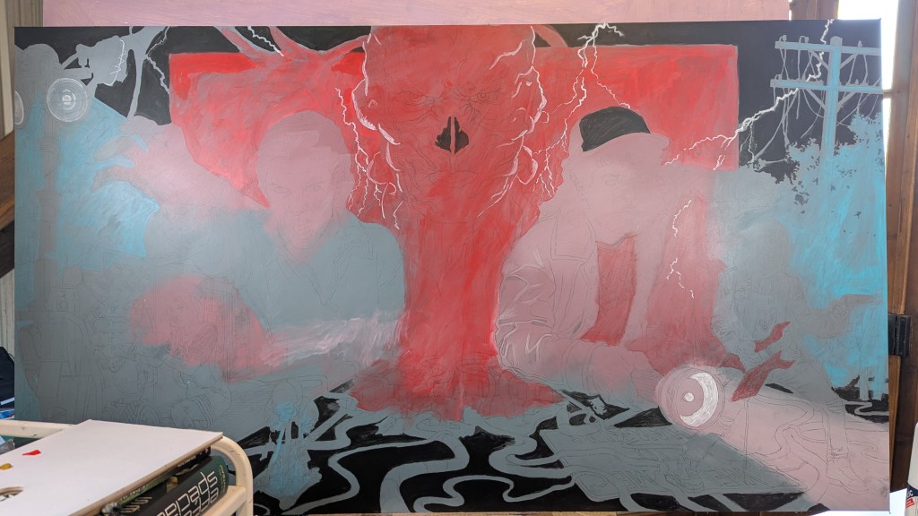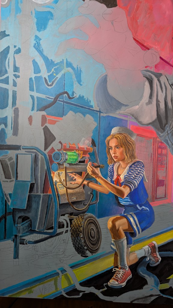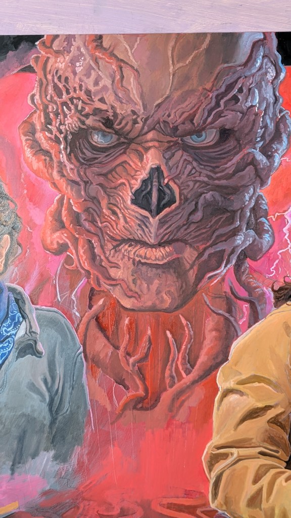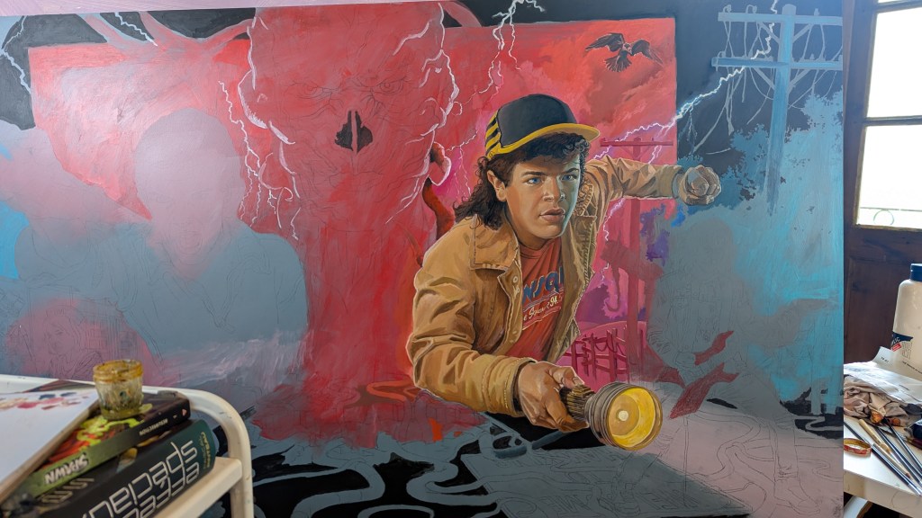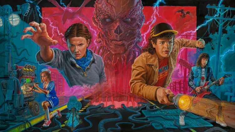 Behaviour Interactive commissioned Geek-Art to find an artist to create the official key visual for the official Netflix Stranger Things Chapter 2 DLC for the game Dead by Daylight. The visual had to be a tribute to 1980s movie posters, and I was lucky enough to find the perfect gem for this project: Julien Vergé. This French painter works on canvas using oil paint.