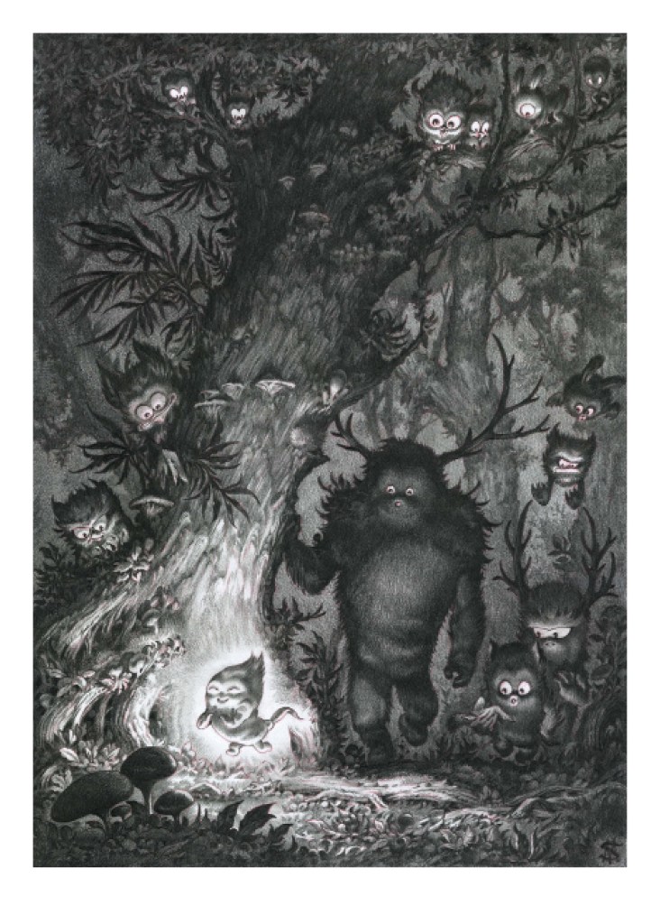 A Sparkle in the Night is a magical piece, filled with poetry and strange yet endearing creatures, brought to life through a delicate play of light and shadow that enhances the mysterious nature of this snapshot scene. The original was drawn on fine Vinci 250 gsm paper (graphite and red pencil, 30 x 42 cm). The reproduction we are offering over this three-day period has been high-resolution scanned by Stan and carefully processed to match the original as closely as possible. Printed in a 50 x 70 cm format on premium fine art paper, the result is truly stunning.